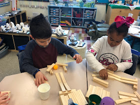 The students were learning how to manipulate the blocks and build
